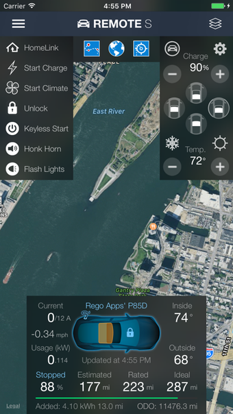 Remote For Tesla requer iOS 12.1.2 e superior. A versão atual do programa é 4.8.1, e você pode obtê-lo apenas em inglês.